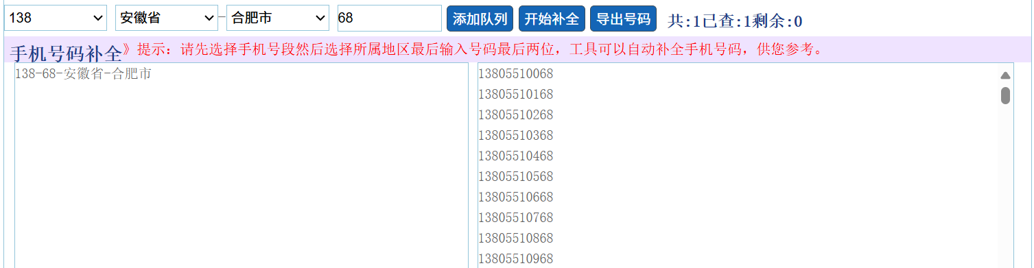 手机号码前三后二位补全号码